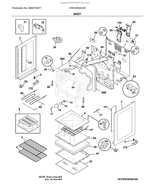 Parts for Frigidaire CFEH3054USD: Body Parts