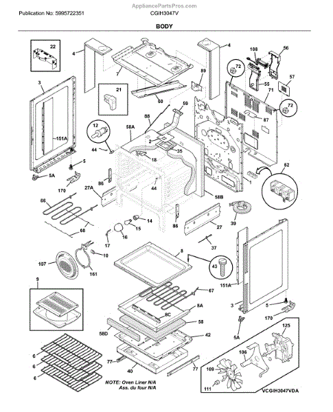 Parts for Frigidaire CGIH3047VFB: Body Parts
