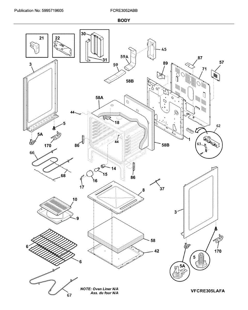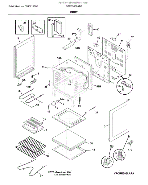 Parts for Frigidaire FCRE3052ABB: Body Parts
