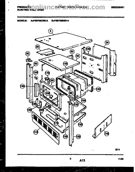 Parts for Frigidaire FEB702BBBA: 02 - Body Parts