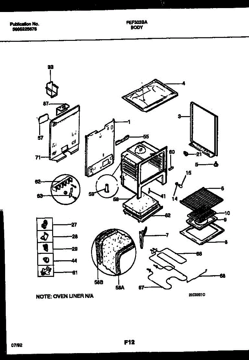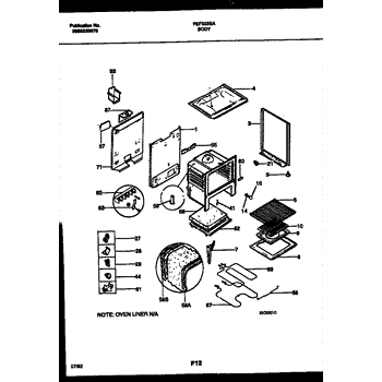 This oven insulation surrounds the oven cavity to retain heat and protect nearby components and cabinetry. Replacing a burnt or deteriorated insulation blanket restores temperature stability and helps keep exterior surfaces cooler on your range during cooking.