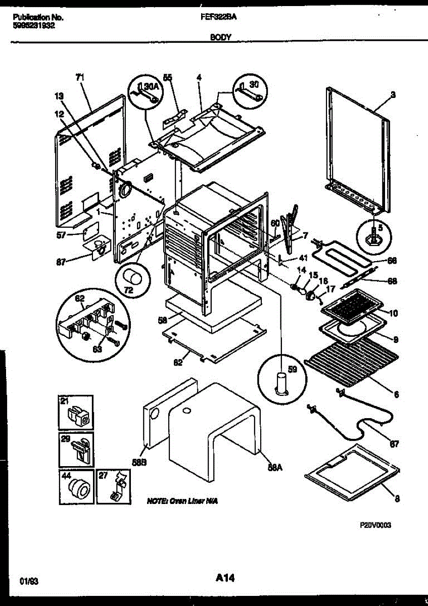 Parts for Frigidaire FEF322BAWA: 03 - Body Parts