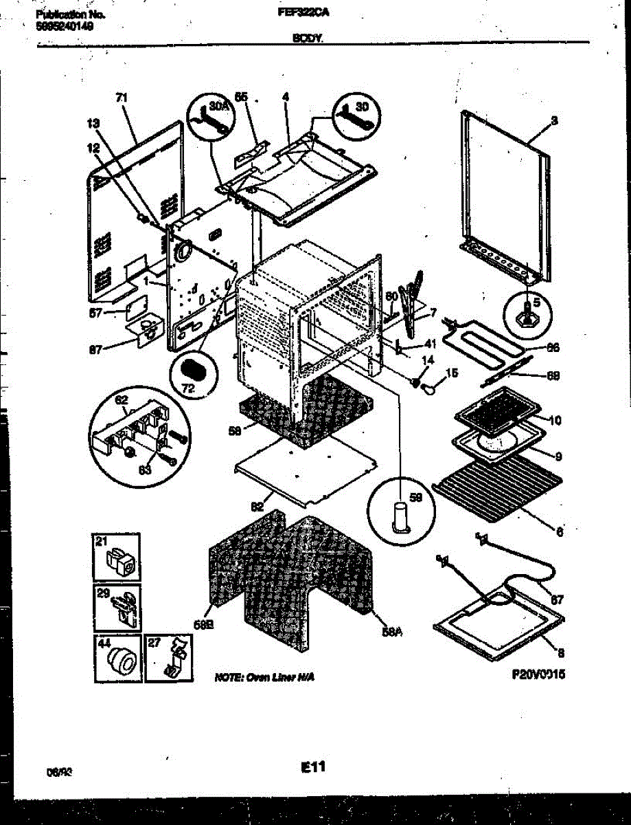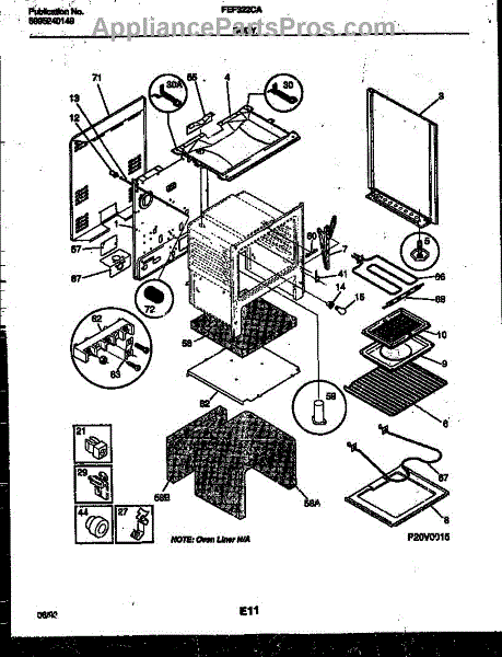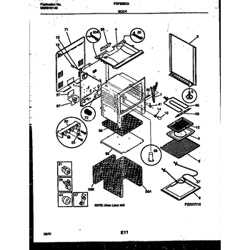 This oven insulation surrounds the oven cavity to retain heat and protect nearby components and cabinetry. Replacing a burnt or deteriorated insulation blanket restores temperature stability and helps keep exterior surfaces cooler on your range during cooking.