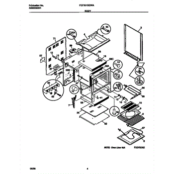 This oven insulation surrounds the oven cavity to retain heat and protect nearby components and cabinetry. Replacing a burnt or deteriorated insulation blanket restores temperature stability and helps keep exterior surfaces cooler on your range during cooking.