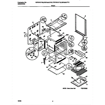 This oven insulation surrounds the oven cavity to retain heat and protect nearby components and cabinetry. Replacing a burnt or deteriorated insulation blanket restores temperature stability and helps keep exterior surfaces cooler on your range during cooking.