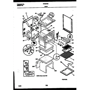 This oven insulation surrounds the oven cavity to retain heat and protect nearby components and cabinetry. Replacing a burnt or deteriorated insulation blanket restores temperature stability and helps keep exterior surfaces cooler on your range during cooking.