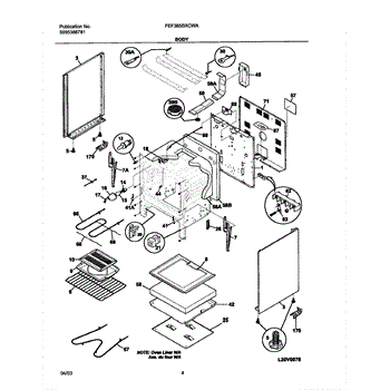 This oven insulation surrounds the oven cavity to retain heat and protect nearby components and cabinetry. Replacing a burnt or deteriorated insulation blanket restores temperature stability and helps keep exterior surfaces cooler on your range during cooking.