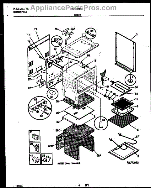 This oven insulation surrounds the oven cavity to retain heat and protect nearby components and cabinetry. Replacing a burnt or deteriorated insulation blanket restores temperature stability and helps keep exterior surfaces cooler on your range during cooking.