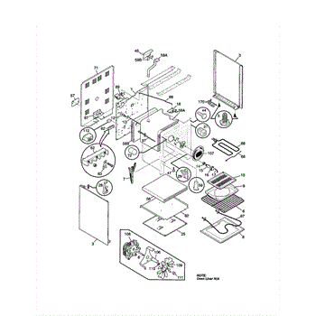 This oven insulation surrounds the oven cavity to retain heat and protect nearby components and cabinetry. Replacing a burnt or deteriorated insulation blanket restores temperature stability and helps keep exterior surfaces cooler on your range during cooking.