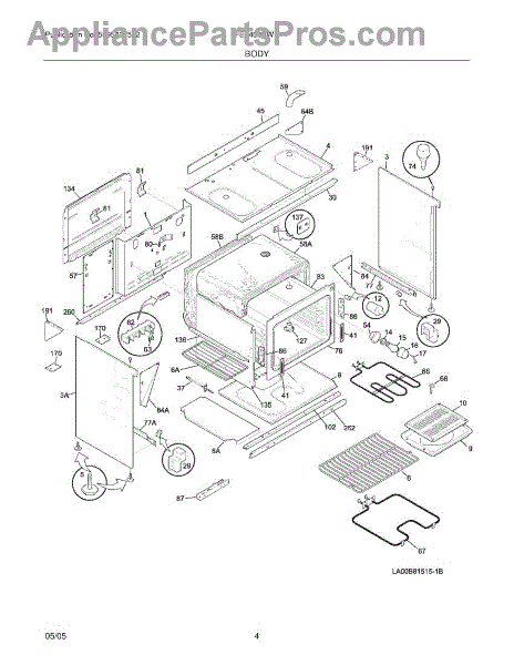 Parts for Frigidaire FEF402BWD: 05 - Body Parts
