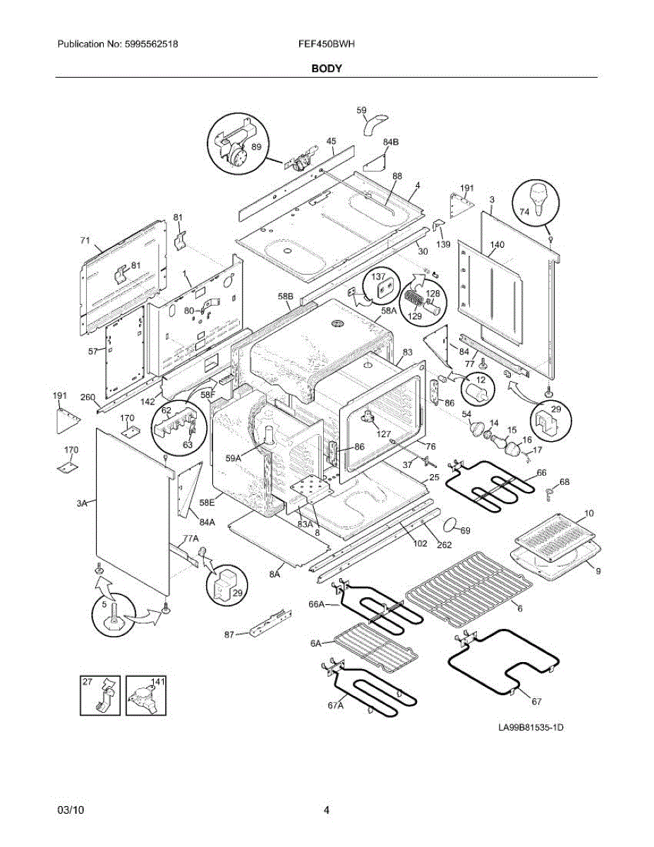Parts for Frigidaire FEF450BWH: 05 - Body Parts