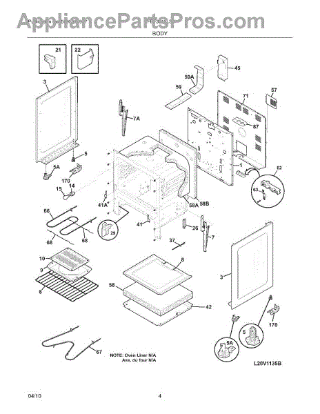 Fiberglass insulation panel that installs behind the oven cavity. Replaces missing, damaged, or rodent-chewed insulation to restore heat containment.