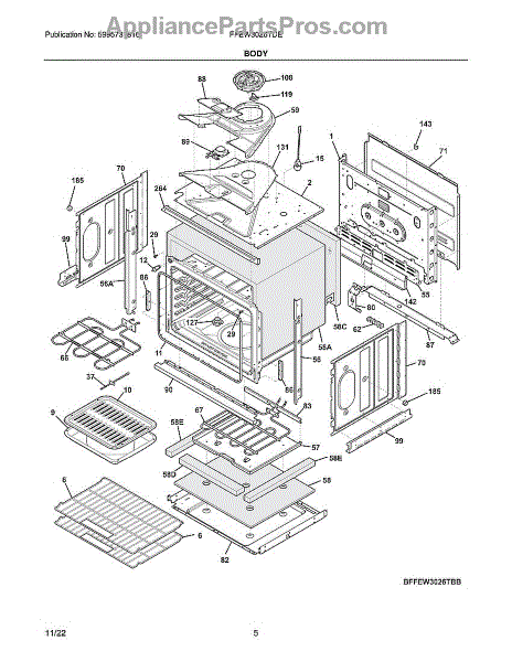 This heat-resistant insulation helps contain oven heat and shield surrounding components. Replacing worn insulation supports faster, more consistent preheating, steadier baking temperatures, and cooler exterior panels for safer, more efficient operation. What it does: