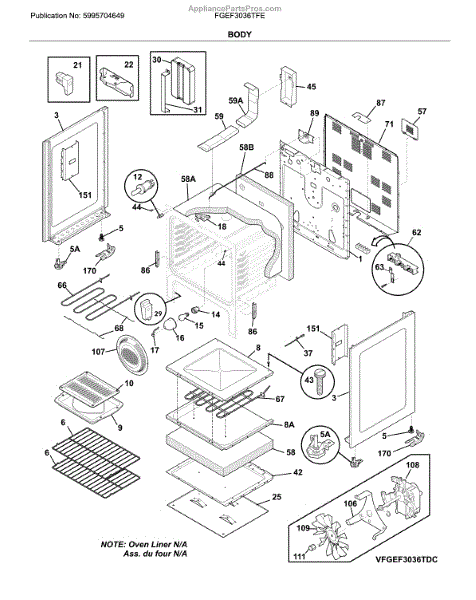 Parts for Frigidaire FGEF3036TFE: Body Parts