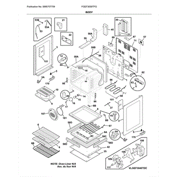 Bottom panel installs inside the oven cavity beneath the baking element. Replace if cracked, discolored, or damaged by melted foil or high heat exposure.
