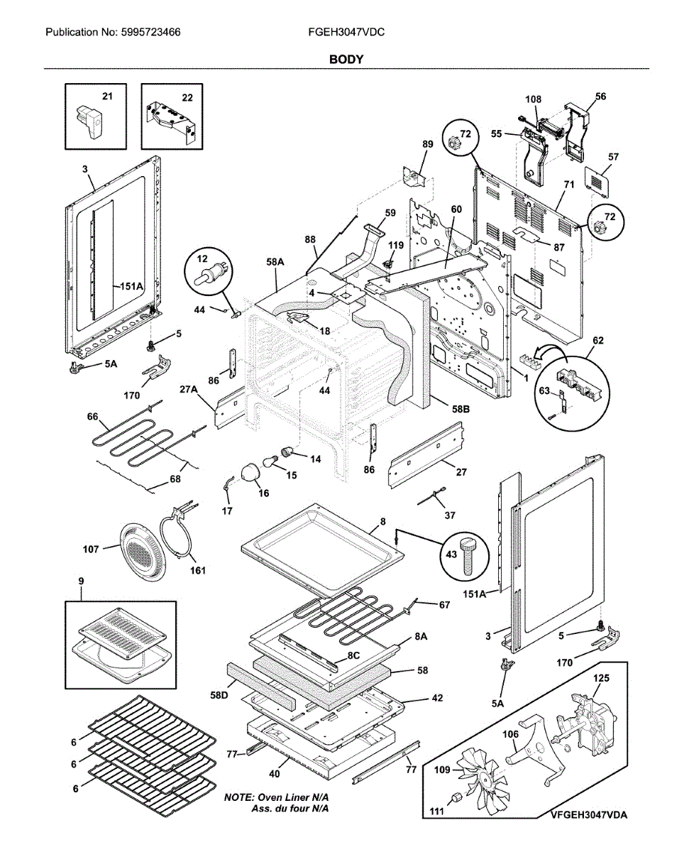 Parts for Frigidaire FGEH3047VDC: Body Parts