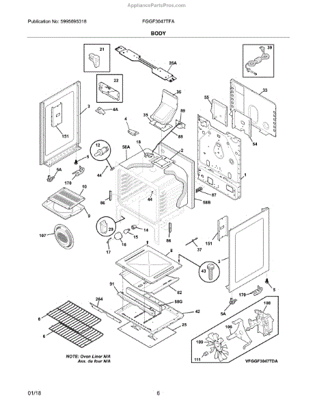 Parts for Frigidaire FGGF3047TFA: Body Parts