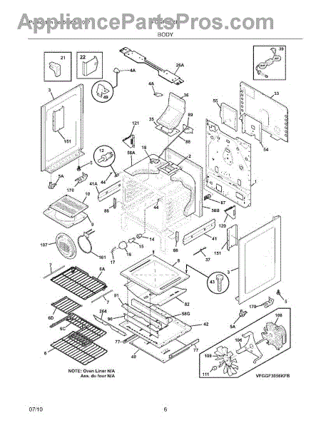 Insulates the oven cavity to reduce heat transfer and improve energy efficiency. Replace if damaged, compressed, or missing to restore proper insulation.