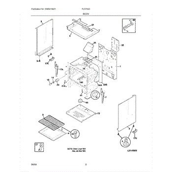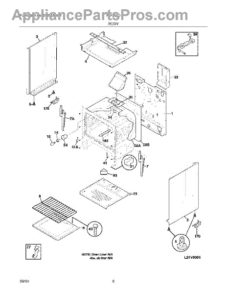 Fiberglass insulation panel that installs behind the oven cavity. Replaces missing, damaged, or rodent-chewed insulation to restore heat containment.