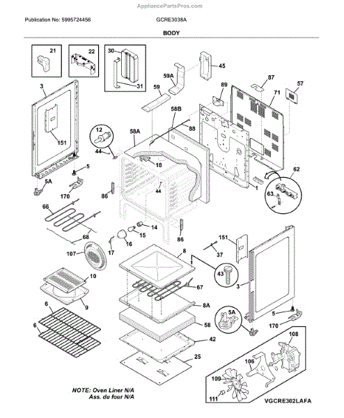 Parts for Frigidaire GCRE3038AFD: Body Parts