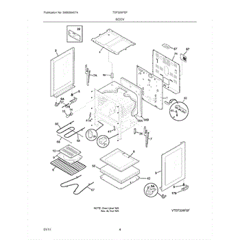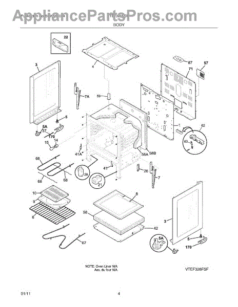 This oven insulation surrounds the oven cavity to retain heat and protect nearby components and cabinetry. Replacing a burnt or deteriorated insulation blanket restores temperature stability and helps keep exterior surfaces cooler on your range during cooking.