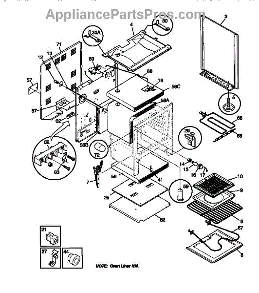 • Covers and seals the hole in the oven bottom to prevent debris buildup