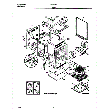Insulation blanket surrounds the oven cavity to retain heat. Replace if burnt, deteriorated, or damaged by pests to restore proper heat retention.