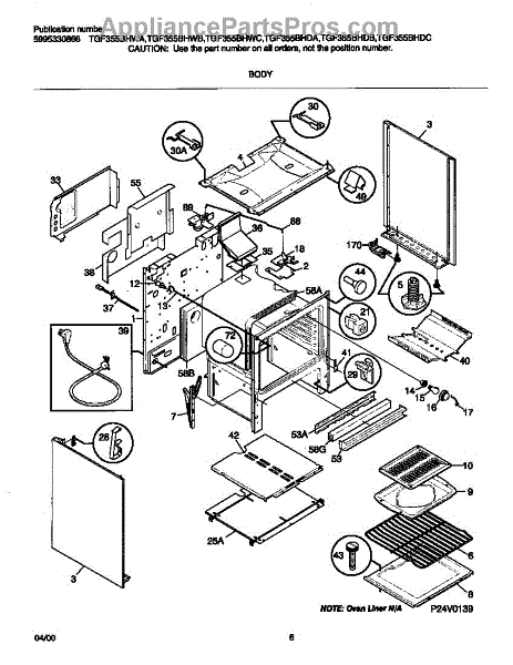 Parts for Frigidaire TGF355BHDA: 04 - Body Parts