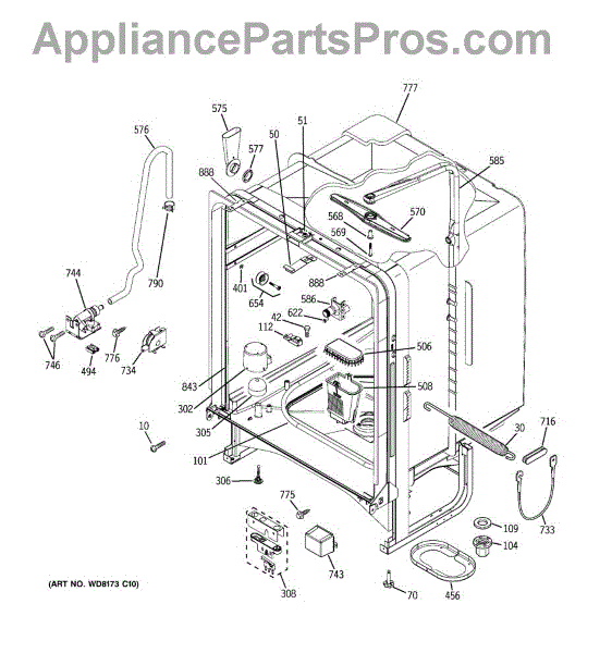 • Provides a secure attachment point between the dishwasher and the cabinet or chassis