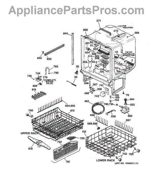 NOTE: Can use dishrack WD28X31819 with silverware basket WD28X265.