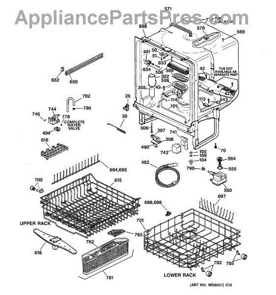 NOTE: Can use dishrack WD28X31819 with silverware basket WD28X265.