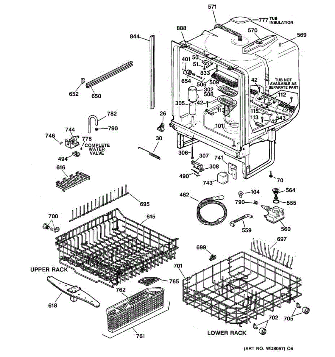 NOTE: Can use dishrack WD28X31819 with silverware basket WD28X265.