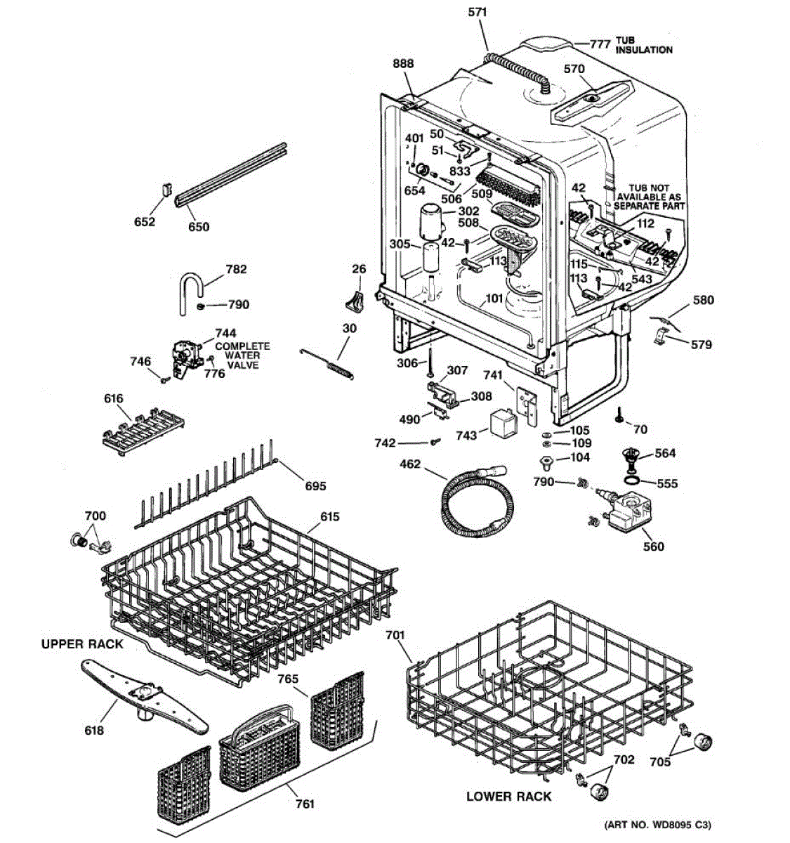 NOTE: Can use dishrack WD28X31819 with silverware basket WD28X265.