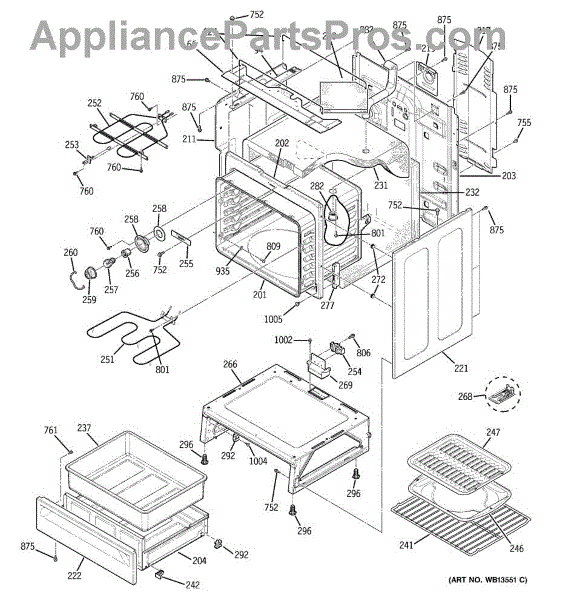 The Rear Door Support is an OEM replacement part for GE ranges. Located at the base of the range, this bracket provides weight-bearing support for the lower oven drawer. It facilitates smooth extension and retraction of the drawer. Causes of faulty support can include cracks or fractures developing over extended use, worn joints unable to sustain drawer weight, or misalignment from repeated opening/closing stress. Symptoms of a bad support include:
