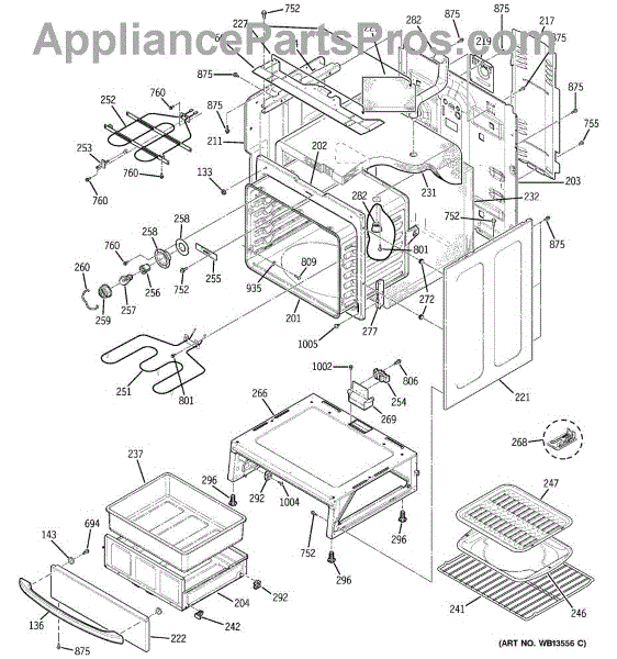 The Rear Door Support is an OEM replacement part for GE ranges. Located at the base of the range, this bracket provides weight-bearing support for the lower oven drawer. It facilitates smooth extension and retraction of the drawer. Causes of faulty support can include cracks or fractures developing over extended use, worn joints unable to sustain drawer weight, or misalignment from repeated opening/closing stress. Symptoms of a bad support include: