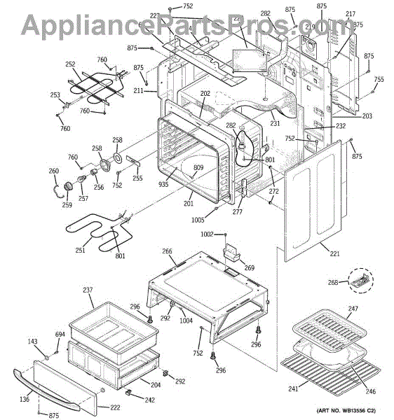 The Rear Door Support is an OEM replacement part for GE ranges. Located at the base of the range, this bracket provides weight-bearing support for the lower oven drawer. It facilitates smooth extension and retraction of the drawer. Causes of faulty support can include cracks or fractures developing over extended use, worn joints unable to sustain drawer weight, or misalignment from repeated opening/closing stress. Symptoms of a bad support include: