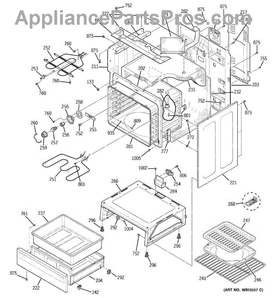 The Rear Door Support is an OEM replacement part for GE ranges. Located at the base of the range, this bracket provides weight-bearing support for the lower oven drawer. It facilitates smooth extension and retraction of the drawer. Causes of faulty support can include cracks or fractures developing over extended use, worn joints unable to sustain drawer weight, or misalignment from repeated opening/closing stress. Symptoms of a bad support include: