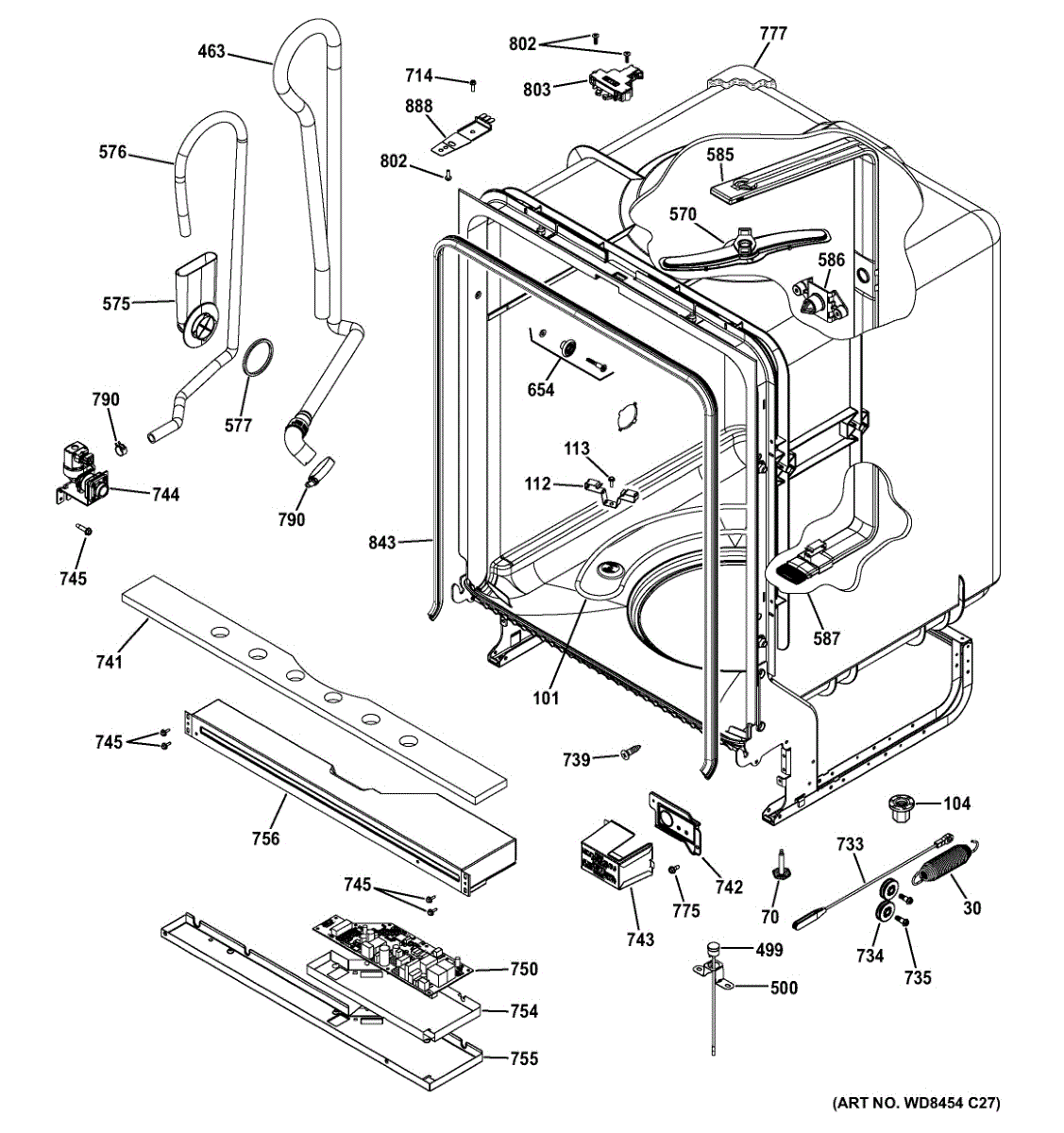 Seals dishwasher door perimeter to prevent water leaks during operation. Replace if you notice leaking from door sides or bottom. Easy 5-minute install.