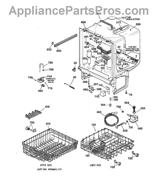 The Upper Rack is an OEM replacement part for GE dishwashers. It provides movable shelf space along the top of the dishwasher interior for washing plates, bowls, and other dishes. The shelves feature an adjustable design that accommodates various sizes and configurations of dishware. Causes of failure include normal wear and tear, accidental impacts that damage shelves or cleaning chemicals stripping away protective coatings. Symptoms of a bad upper rack can include: