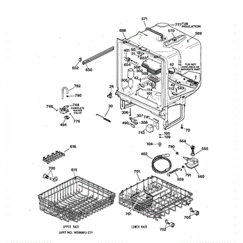 The Upper Rack is an OEM replacement part for GE dishwashers. It provides movable shelf space along the top of the dishwasher interior for washing plates, bowls, and other dishes. The shelves feature an adjustable design that accommodates various sizes and configurations of dishware. Causes of failure include normal wear and tear, accidental impacts that damage shelves or cleaning chemicals stripping away protective coatings. Symptoms of a bad upper rack can include: