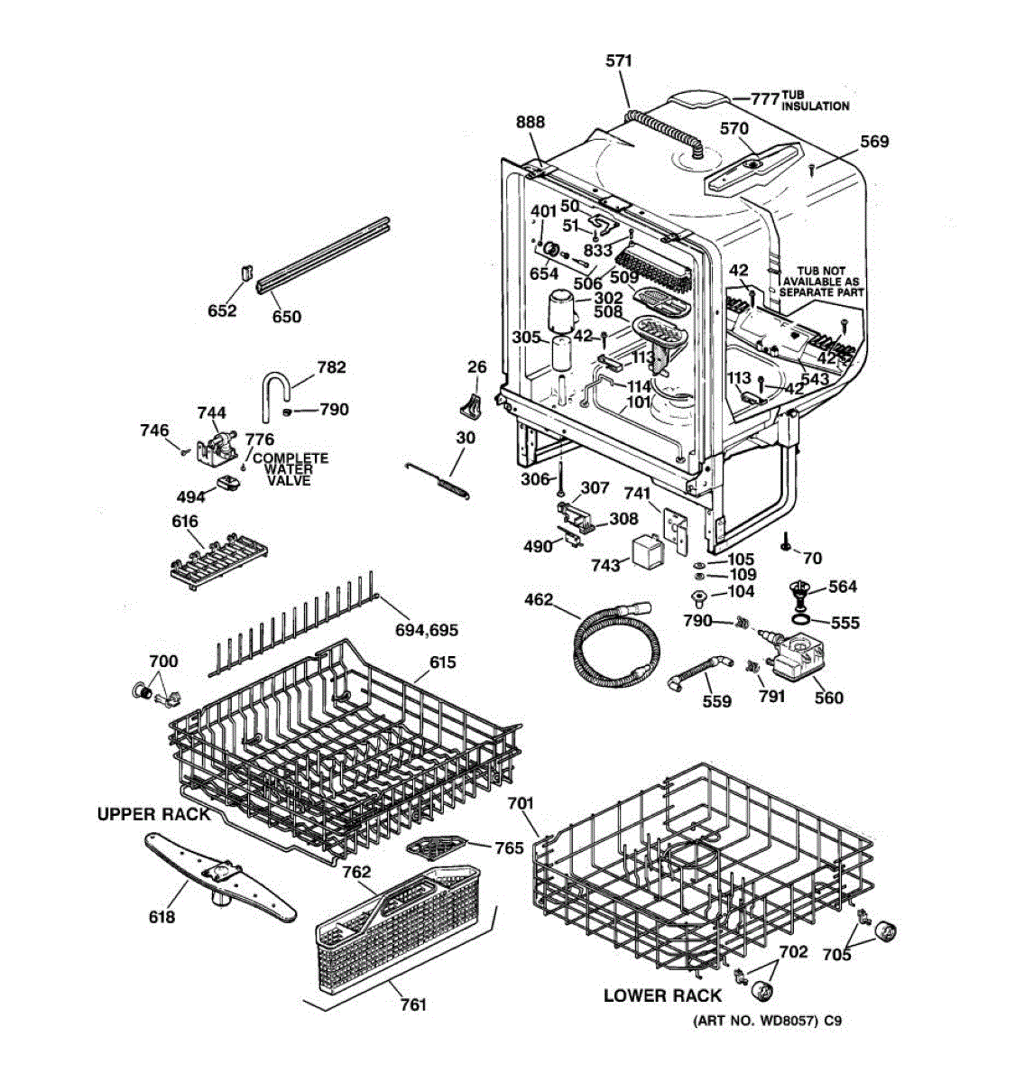 NOTE: Can use dishrack WD28X31819 with silverware basket WD28X265.