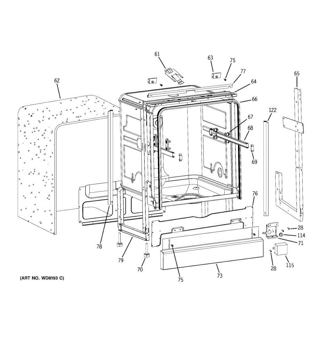 Insulation pad that wraps around the dishwasher tub to reduce noise and retain heat. Replace if torn, deteriorated, or missing for quieter operation.