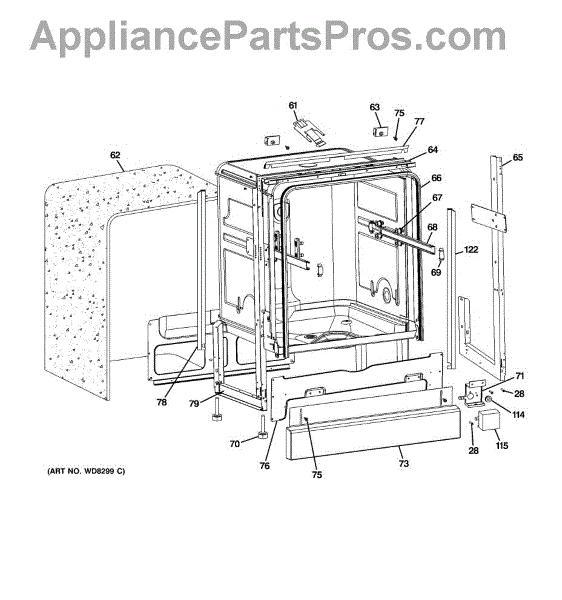 Insulation pad that wraps around the dishwasher tub to reduce noise and retain heat. Replace if torn, deteriorated, or missing for quieter operation.