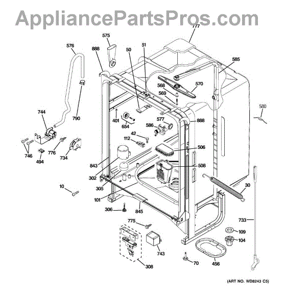 • Provides a secure attachment point between the dishwasher and the cabinet or chassis