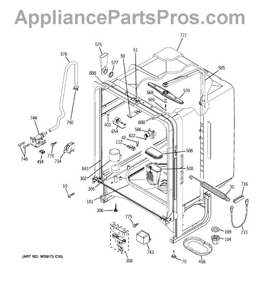 The screw is an OEM replacement component for GE dishwashers. It is used to securely fasten parts inside the dishwasher tub assembly.