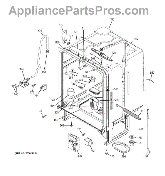 • Provides a secure attachment point between the dishwasher and the cabinet or chassis