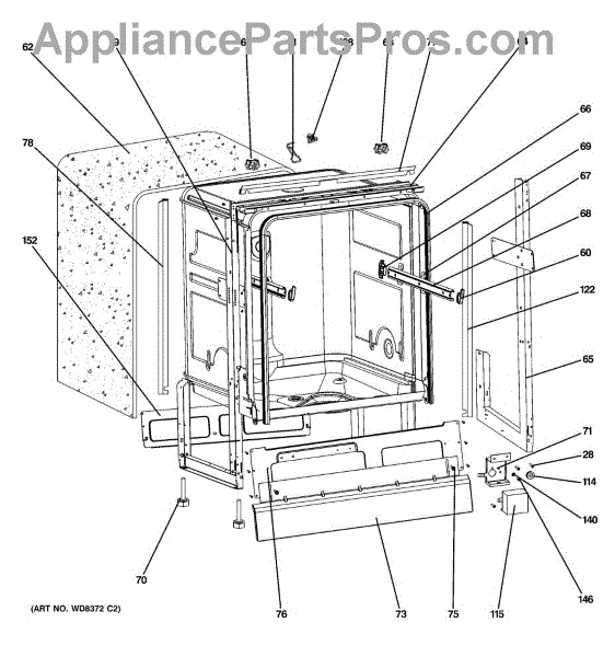 The Tub Gasket is an OEM part for GE dishwashers. It creates a watertight seal around the dishwasher tub, preventing water from leaking out during the wash cycle and ensuring efficient operation.