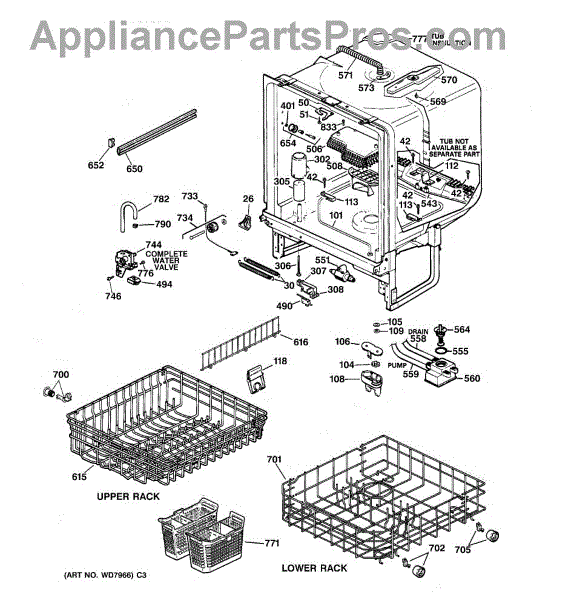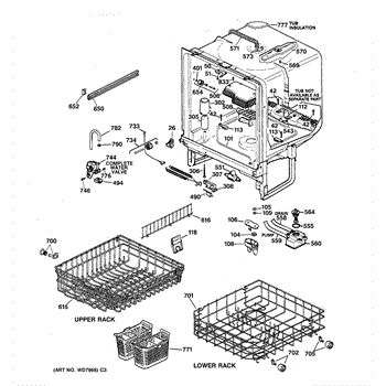 The Lower Dishrack is an OEM part for GE dishwashers. It provides a sturdy shelf for placing pots, pans, plates, and other dishware on the bottom level of the dishwasher interior. The lower dishrack supports dish loads, holding them securely in place during the wash cycles.