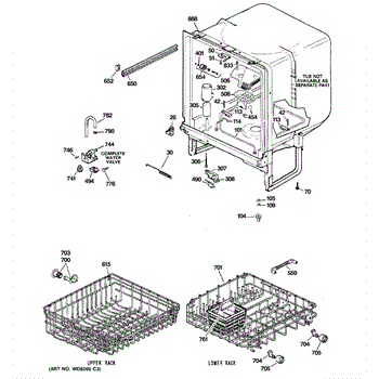 The Upper Rack is an OEM replacement part for GE dishwashers. It provides movable shelf space along the top of the dishwasher interior for washing plates, bowls, and other dishes. The shelves feature an adjustable design that accommodates various sizes and configurations of dishware. Causes of failure include normal wear and tear, accidental impacts that damage shelves or cleaning chemicals stripping away protective coatings. Symptoms of a bad upper rack can include: