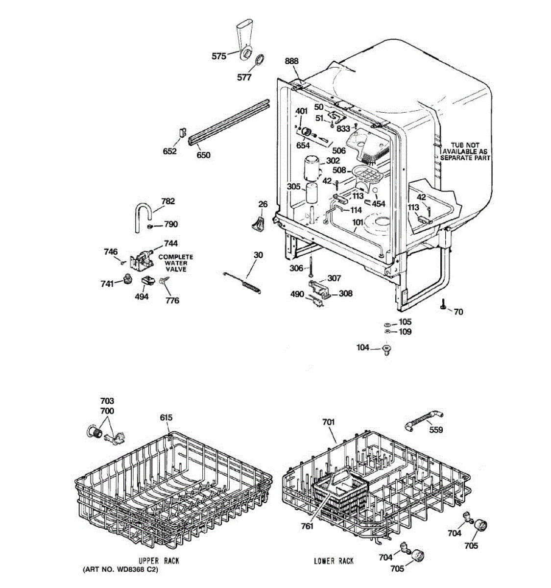Prevents water leaks at the dishwasher door corners during wash cycles. Replace if you notice leaking along the bottom of the door. Clips onto tub rail.